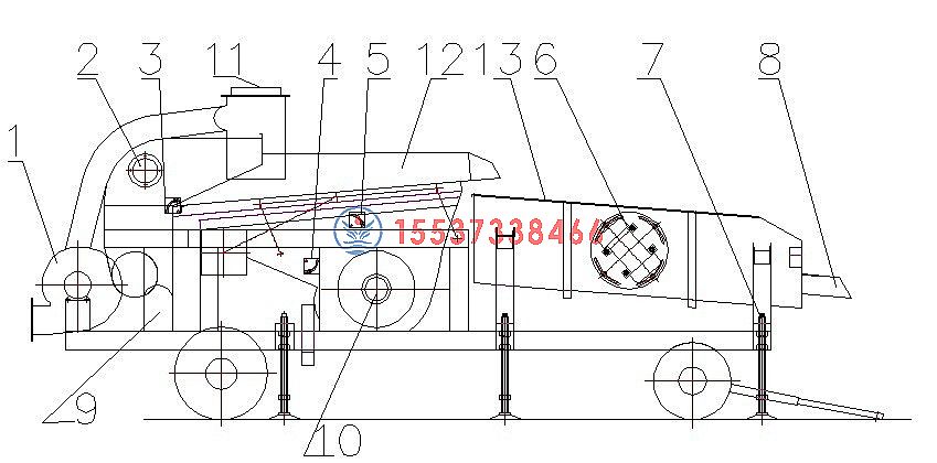 1、除塵風(fēng)機(jī) 2、觀察孔 3、調(diào)節(jié)雜料擋板 4、調(diào)節(jié)風(fēng)量風(fēng)壓 5、調(diào)節(jié)比重篩風(fēng)量 6、振動(dòng)電機(jī),調(diào)激振動(dòng)力